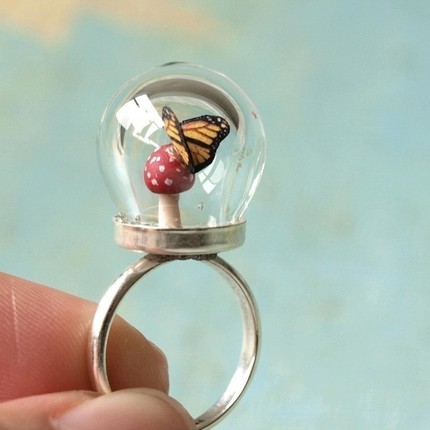I've got an old aquarium that I wish to convert to a terrarium some time in the future. I like the concept of mini-ecosystems. But I never would have dreamed up the likes of the mini-terrarium jewelry of Woodland Belle on Etsy.