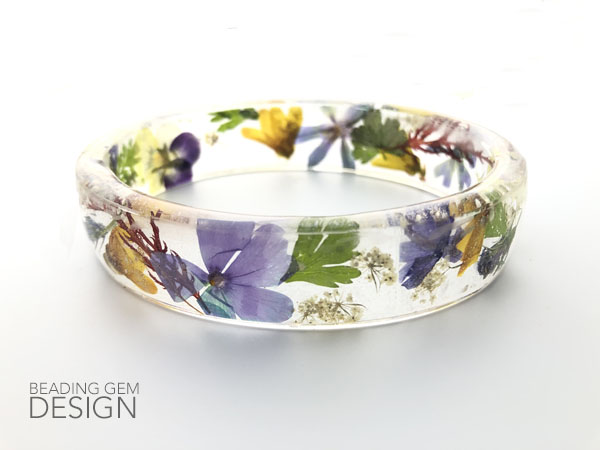 June is the perfect time of year to start collecting and preparing flowers, leaves and grasses for resin jewelry making! Everything is blooming. So I went about making my first real flower resin bangles. I learned quite a bit along the way. Here is how I did it.